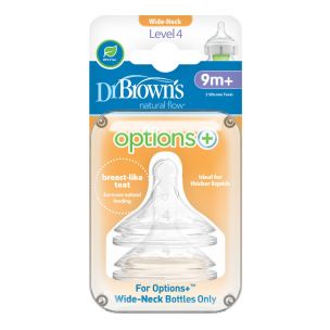 Dr. Brown's WN4201 Náhradné silikónové cumlíky pre fľašky options+ so širokým hrdlom 2 ks, 9m+